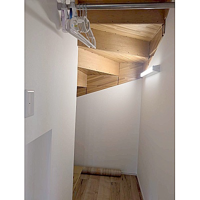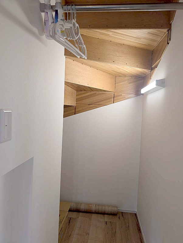 デッドスペースを有効活用できる階段下収納。 日用品のストックはもちろん、大型のものもすっきりしまえます。