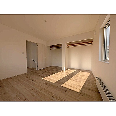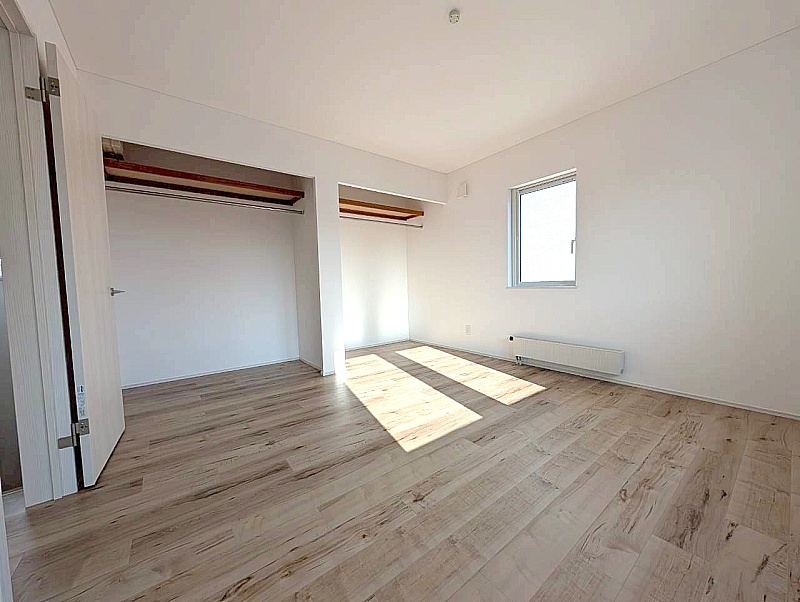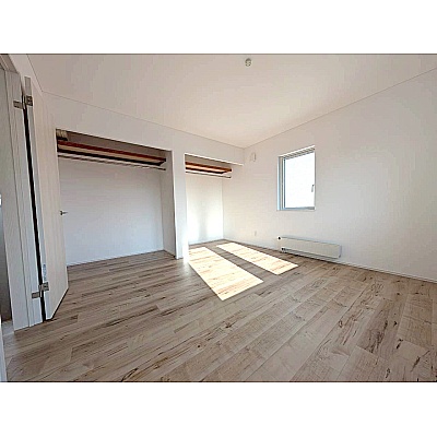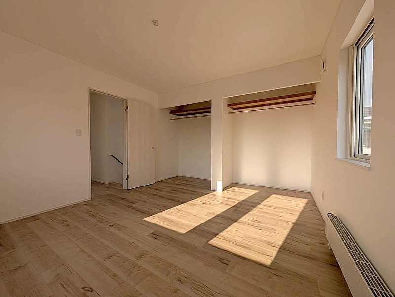 2階洋室8帖 主寝室にはゆとりある収納を備えており、 季節物の衣類もすっきりしまえるスペースがあります。