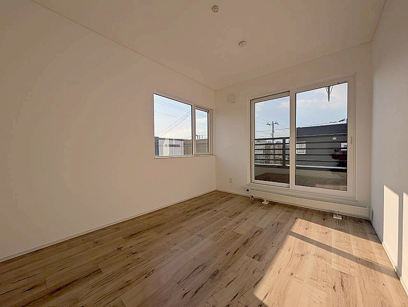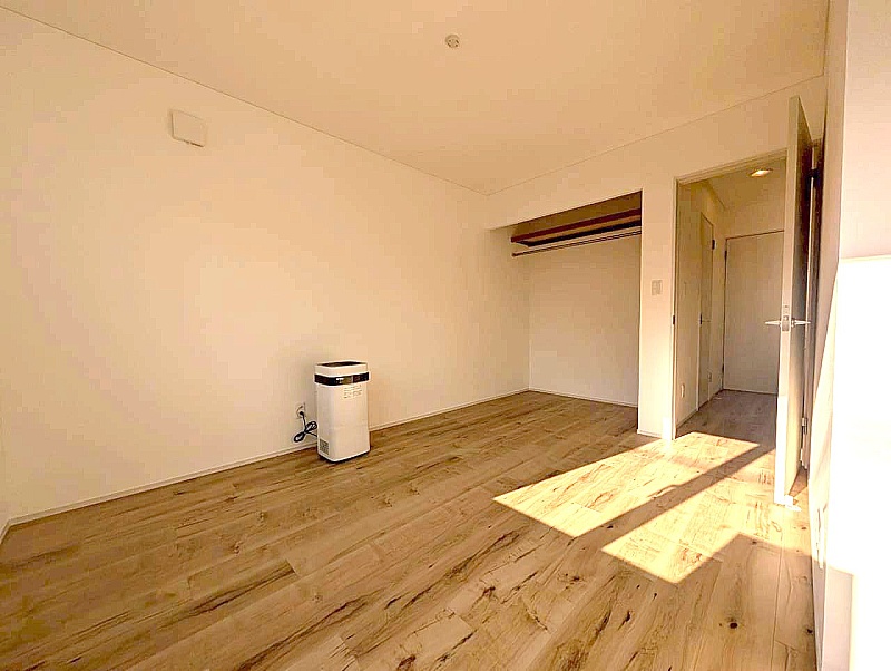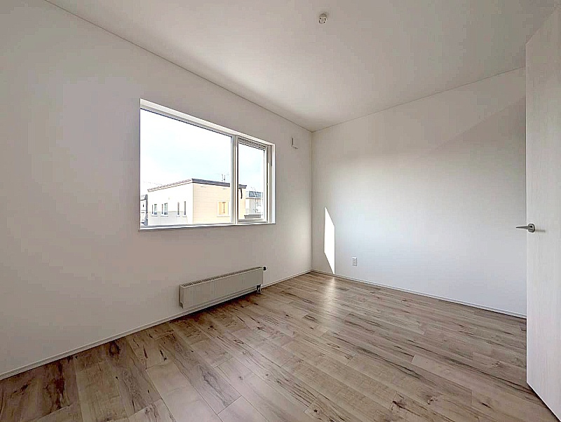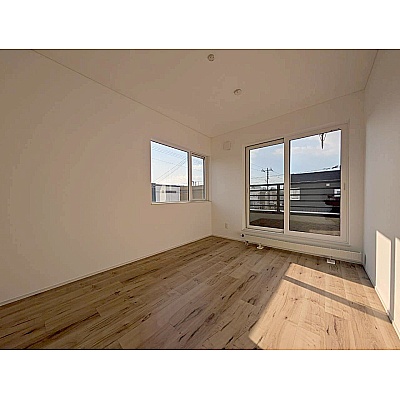 バルコニー窓から光が入る明るい洋室。 布団を干した時の心地よさも感じられるお部屋です。