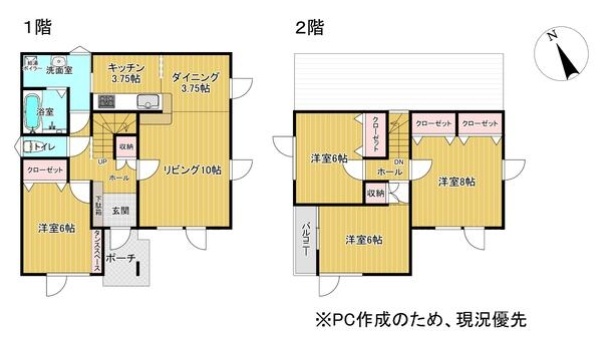 | 間取り | 4LDK1階:洋室6帖 / 2階:洋室6帖 洋室6帖 洋室8帖 |