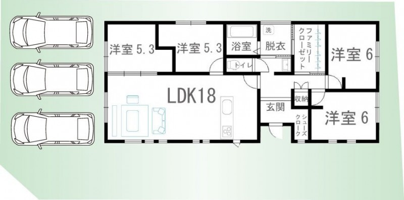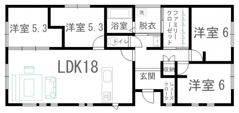 18帖の広々リビングに洋室が4部屋ある間取り♪ファミリークロー