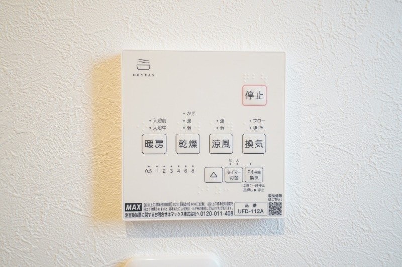 浴室の操作パネルです。浴室乾燥や暖房、涼風など機能が充実!※
