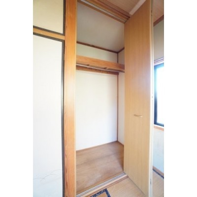 洋室収納。ハンガーパイプが付いておりコートなど掛ける収納も可