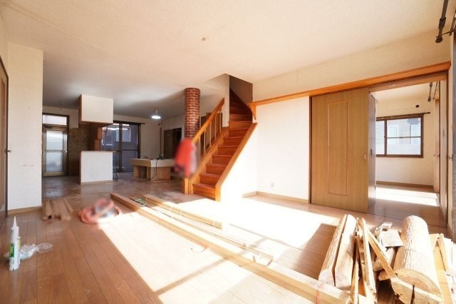 25帖リビング。クロスの張替を行います。※リフォーム途中の写真