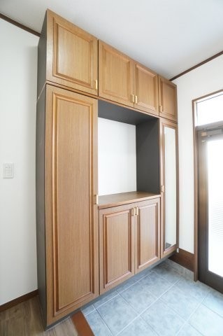 玄関には大きめのシューズボックス設置済み!鍵などの小物置き