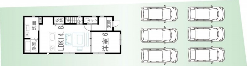 車6台駐車可能です!※車の配置は一例です。