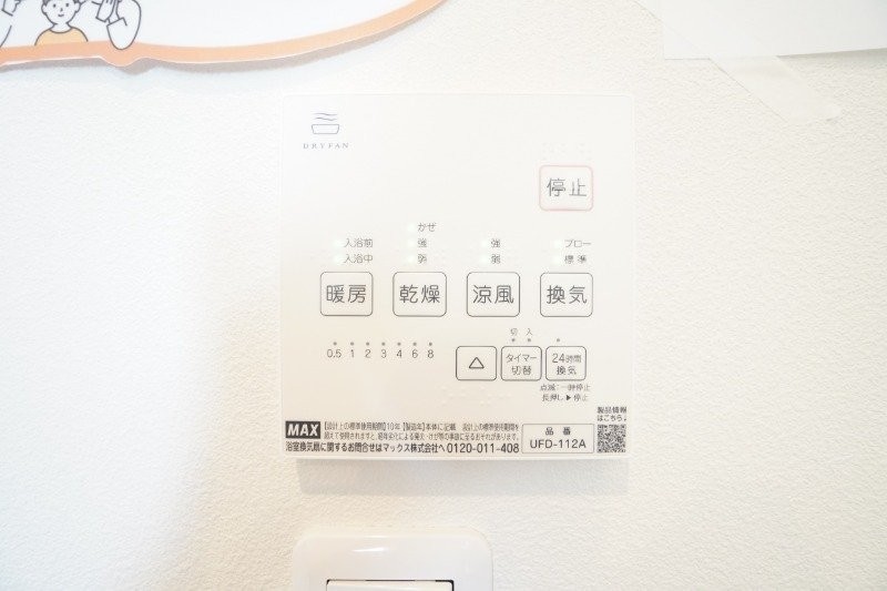 浴室操作パネルです。浴室乾燥や暖房、涼風など機能が充実!※