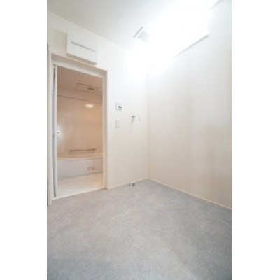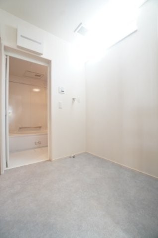 脱衣所。洗濯機置き場はもちろん、収納棚を設置できるスペース