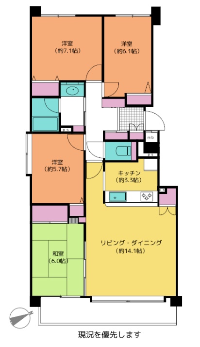 4LDK(89.23m²)└ LD14.1帖 洋室6.1帖 洋室7.1帖 洋室5.7帖 和室6帖