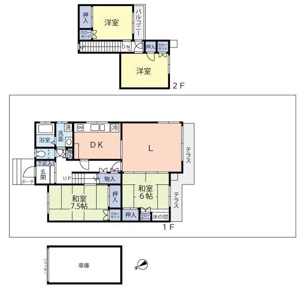 | 間取り | 4LDK1階:L10帖 DK6帖 和室6帖 和室7.5帖 / 2階:洋室6帖 洋室6帖 |