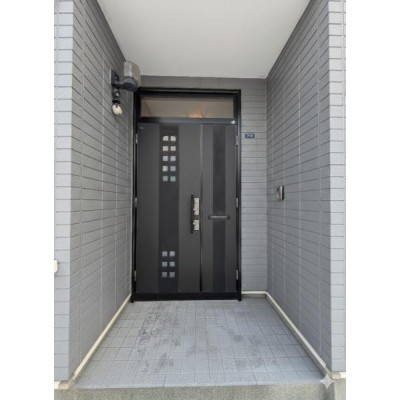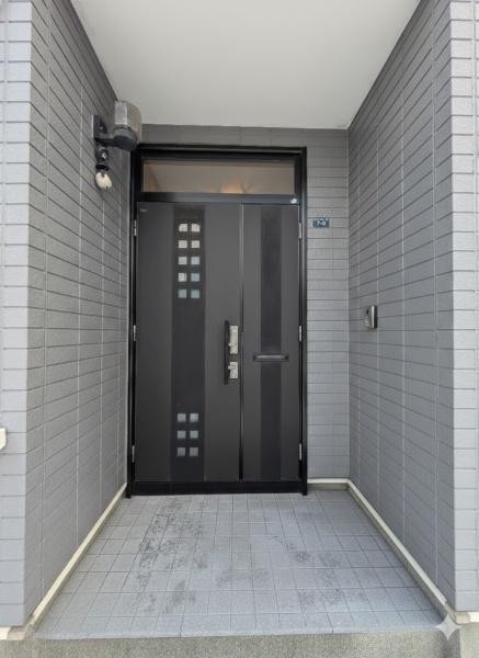 玄関 ポーチの親子ドアが目を引きます