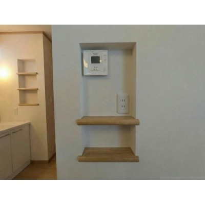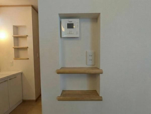 キッチン インターホンと便利なニッチ棚です