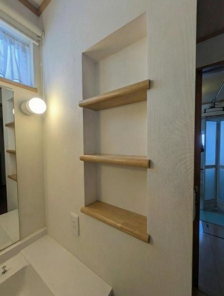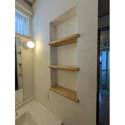 洗面台・洗面所 洗面所のニッチ棚が便利です