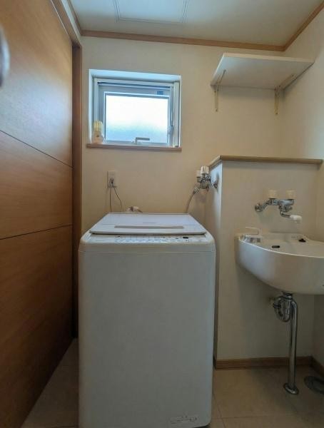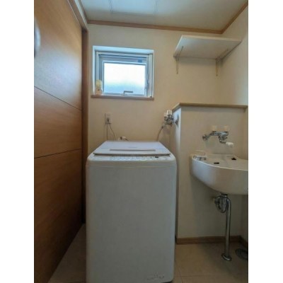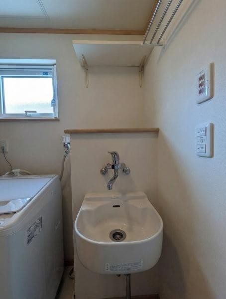 洗面台・洗面所 洗濯機スペースと明るい採光窓