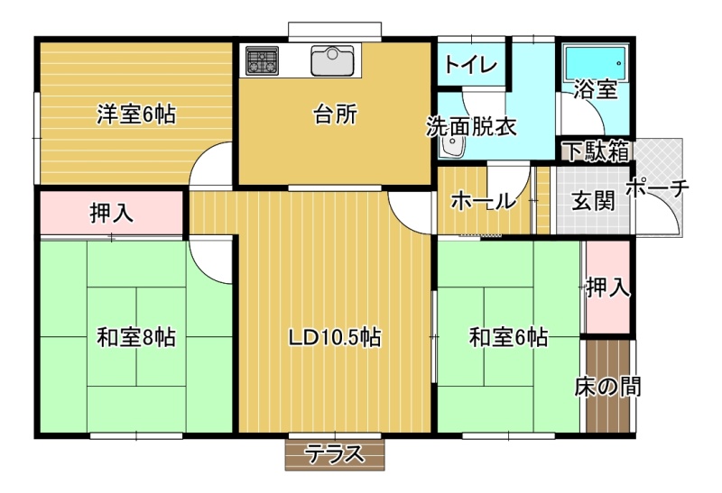 | 間取り | 3LDK1階:K6帖 和室6帖 和室8帖 洋室6帖 L10.5帖 |