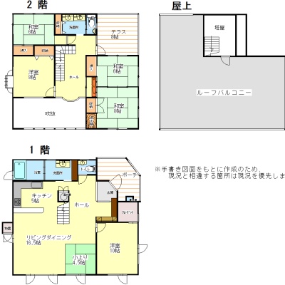| 間取り | 5LDK1階:LD21帖 K5帖 洋室10帖 / 2階:洋室8帖 和室8帖 和室6帖 和室6帖 |