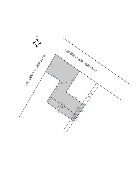 総区画数-/- 接道状況 三方 - 北西側幅36.10mの公道に12.50m接道