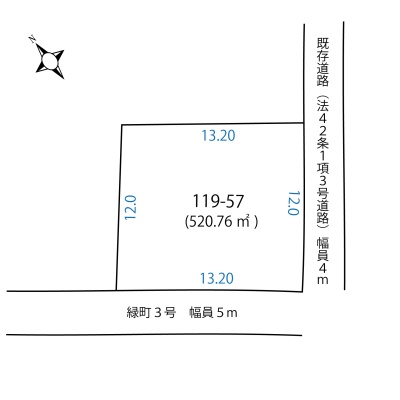 総区画数-/- 接道状況 角地 - 南西側幅5.00mの公道に13.20m接道