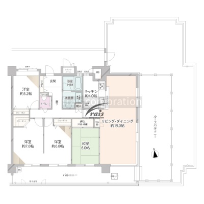 4LDK(104m²)└ LD19帖 K4帖 洋室7.6帖 洋室6.8帖 洋室5.2帖 和室6帖