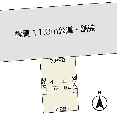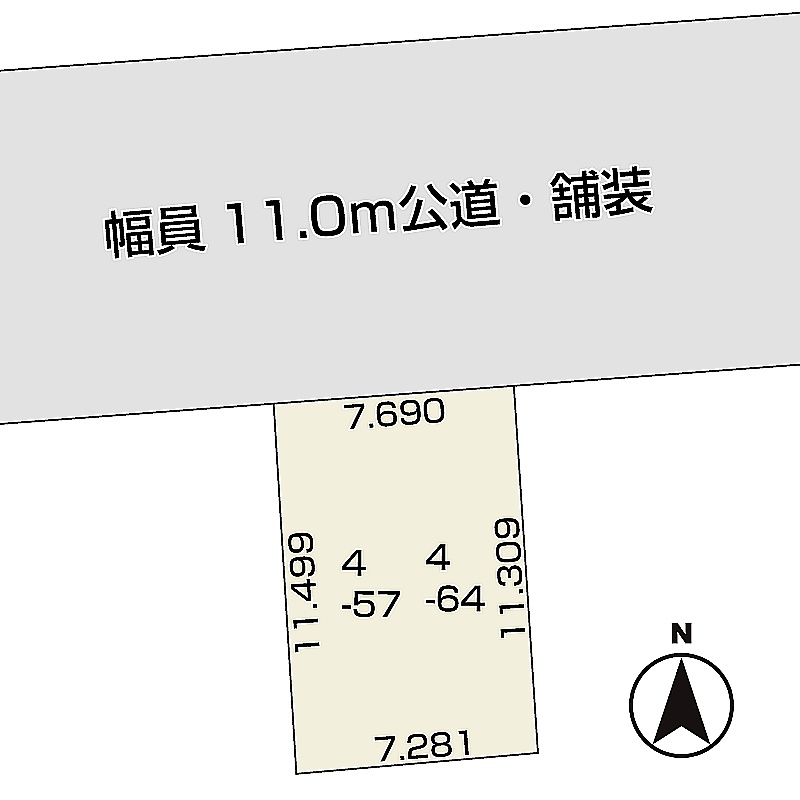 総区画数1区画/- 接道状況 一方 - 北側幅11.00mの公道に7.69m接道