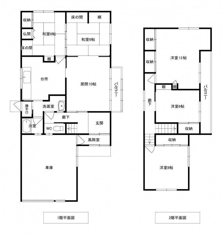 | 間取り | 5LDK1階:L10帖 和室6帖 和室6帖 DK / 2階:洋室12帖 洋室8帖 洋室6帖 |