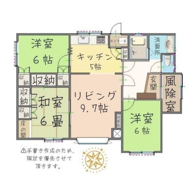 | 間取り | 3LDK1階:K5帖 L9.7帖 洋室6帖 洋室6帖 和室6帖 |