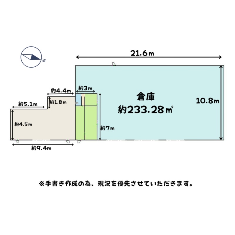 建物の階建 地上1階建 主要採光面 構造 鉄骨造 接道状況 二方(除角地) - 東側幅6.50mの公道に接道
