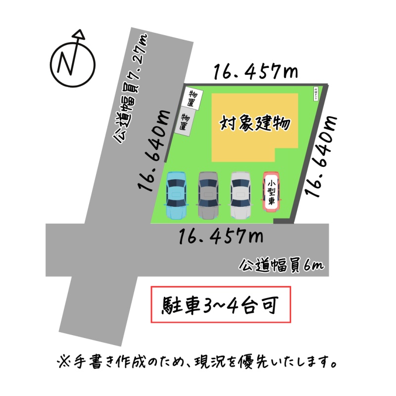 - 西側幅7.27mの公道に16.64m接道