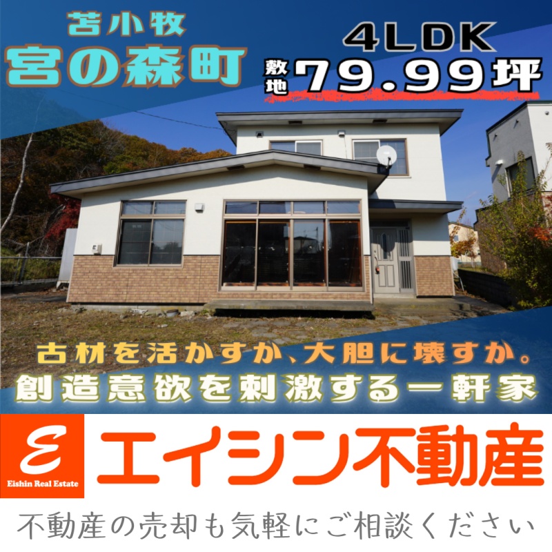 ここに注目!🔴弊社売主のため、仲介手数料無料【月々33,043円のお支払い】※お借入の参考例:お借入総額380万円の場合 (当初固定金利3年・金利0.85%・お借り入れ期間10年・ボーナス払いなし) ※その他諸費用発生致します。 🔶古材を活かすか、大胆に壊すか-あなたの理想の住まいを創り上げてみませんか? 😊 🔶緑豊かな住環境・苫小牧市宮の森町に4LDK戸建が登場しました🏠 🔶各階に居室が2部屋ずつ設けられており、ご家族の成長やライフスタイルに合わせて1階に寝室を設けることも可能です🛏 🔶南西角地に位置し、約79坪のゆとりある敷地には3~4台の駐車スペースを確保🚘来客時も安心です👌 🔶コンビニ・ドラッグストア・スーパー・金融機関もお車で3分圏内🎵毎日のお買い物や急な用事もスムーズに済ませられる、暮らしやすい住環境🌈日新小学校・明倫中学校まで徒歩16分、認定こども園や保育園も徒歩15分圏内に揃っており、子育て世帯にもオススメの立地です🎈 🔶ご内覧のご希望・詳細・ご質問はエイシン不動産までお気軽にお問い合わせ下さい😊