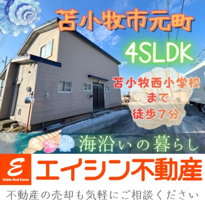 ここに注目!【月々42,174円のお支払い】※お借入の参考例:お借入総額485万円の場合 (当初固定金利3年・金利0.85%・お借り入れ期間10年・ボーナス払いなし) ※その他諸費用発生致します。🔶苫小牧市元町に、苫小牧西小学校まで徒歩7分と、お子様の通学も安心の距離です。道南バス「元町1丁目」停からも徒歩4分で、毎日の通勤・通学にも大変便利ですね。🔶107.73㎡のゆとりある4SLDKの間取りは、ご家族それぞれのプライベート空間を大切にしていただけます。広々とした179㎡の敷地には、お車3台分の駐車スペースも確保されており、来客時も安心です。🔶システムキッチンや温水洗浄トイレ、そして北海道の冬も快適に過ごせる灯油暖房など、充実した設備が日々の暮らしをサポートします。🔶日当り良好な角地に位置し、閑静な住宅街で穏やかな日々を送っていただけます。スーパーやドラッグストア、飲食店なども徒歩圏内に揃い、生活利便性も魅力です。このお家で、新しい家族の思い出を紡いでみませんか?🔶ご内覧のご希望・詳細・ご質問はエイシン不動産までお気軽にお問い合わせ下さい。