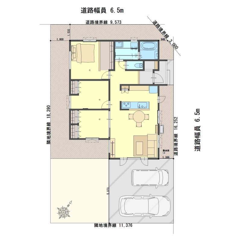 | 間取り | 3LDK1階:LDK18.5帖 洋室6.5帖 洋室5.3帖 洋室4.7帖 |