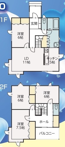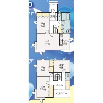 | 間取り | 4LDK1階:LDK16帖 洋室6帖 / 2階:洋室7.5帖 洋室6帖 洋室6帖 |