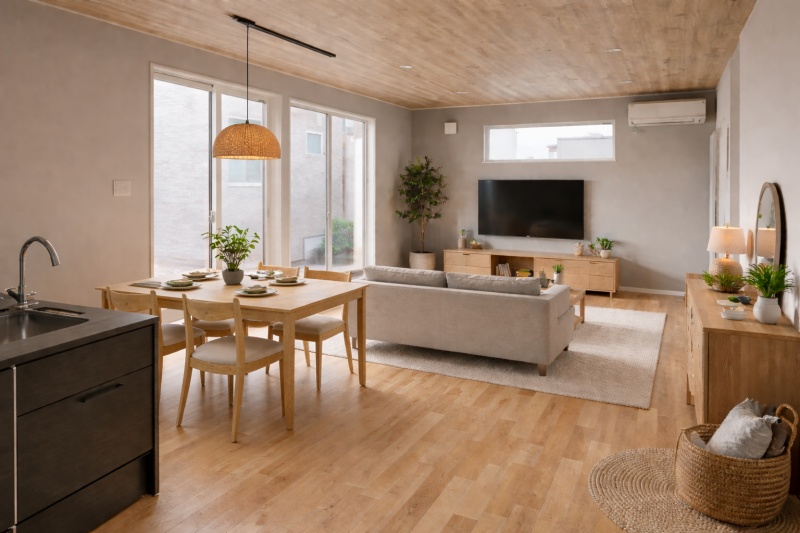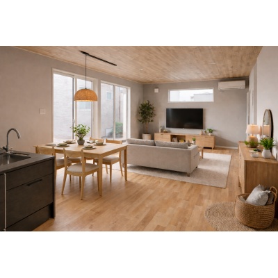 工務店だからこその発想や空間構成。素材感や色づかい、照明プランで一変する夜の雰囲気。トータルコーディネートのバランスの良さがその家の雰囲気を決めます。予算のご相談、土地探しからお任せください。