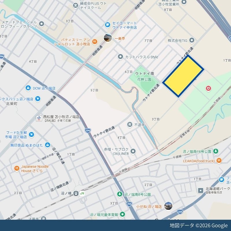 | 交通 | 沼ノ端駅(徒歩19分)|沼ノ端駅(車で6分)|道南バス 「ウトナイ団地南」停(徒歩10分)道順を見る |