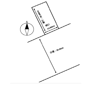 総区画数-/- 接道状況 一方 - 南東側幅36.00mの公道に13.00m接道