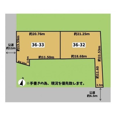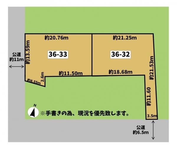 総区画数-/- 接道状況 二方(除角地) - 南西側幅11.00mの公道に13.50m接道