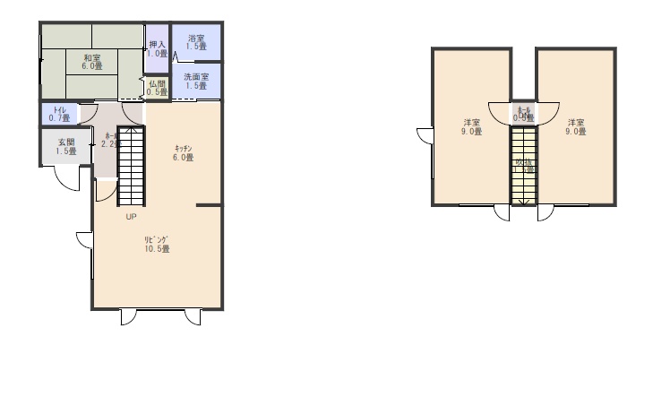 | 間取り | 3LDK1階:和室6帖 LDK16.5帖 / 2階:洋室9帖 洋室9帖 |