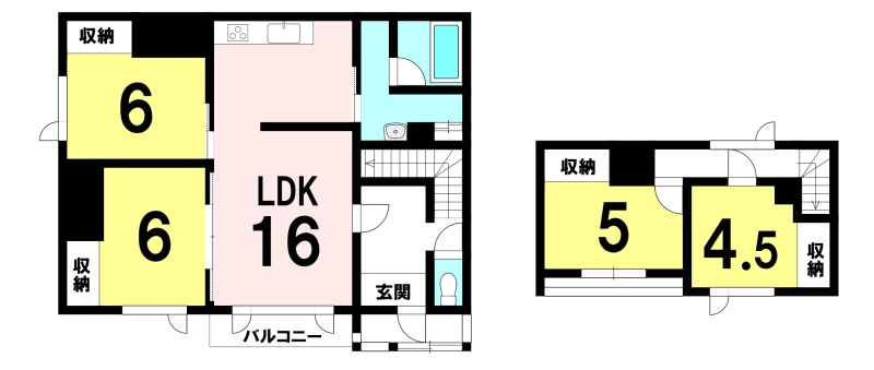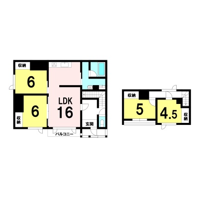 | 間取り | 4LDK1階:洋室6帖 洋室6帖 / 2階:洋室4.5帖 洋室5帖 |