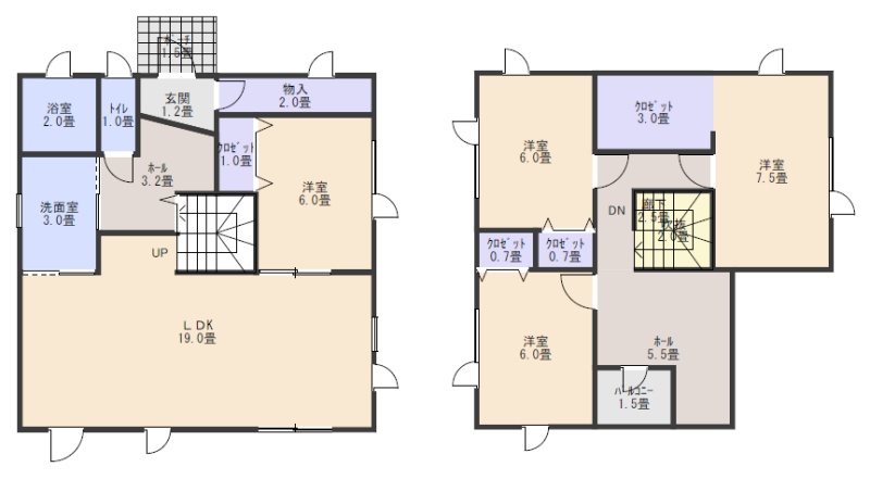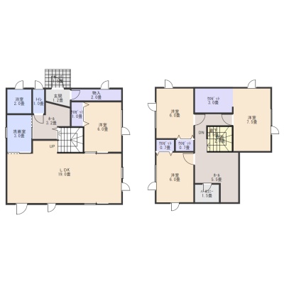 | 間取り | 4LDK1階:LDK18帖 洋室6帖 / 2階:洋室6帖 洋室6帖 洋室7.5帖 |