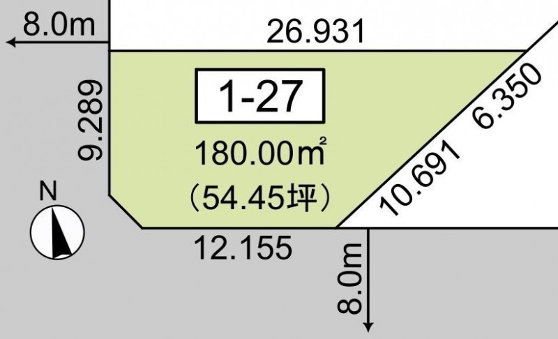 総区画数1区画/全61区画 接道状況 角地 - 南側幅8.00mの公道に12.10m接道