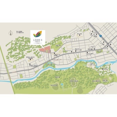 ここに注目!青葉公園の風薫る、全61区画の美しい街並み LEAVES YAMATO(リーヴス大和)。周辺には、幹線道路を渡らずに通学できる保育園、幼稚園が複数あります。児童が放課後に安心して過ごせる学童クラブや、安全に遊べる大型公園などが整備されており、子育てにやさしい地域です。
