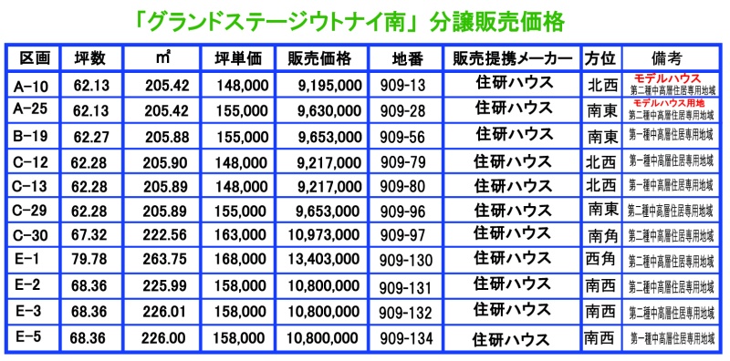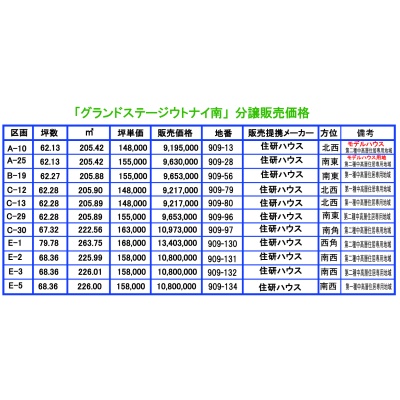 住研ハウス分譲分価格表