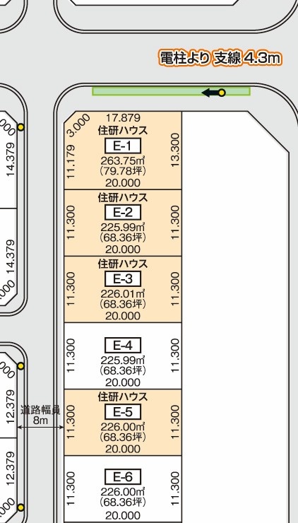 E-1(909-130)北西角 79.78坪1,340.3万円 E-2(909-131)西 68.36坪1,080万円