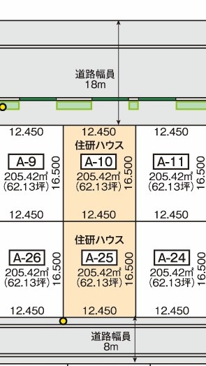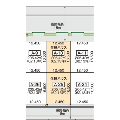 A10モデルハウス建設地62.13坪919.5万円 A25モデルハウス用地62.13坪963.0万円