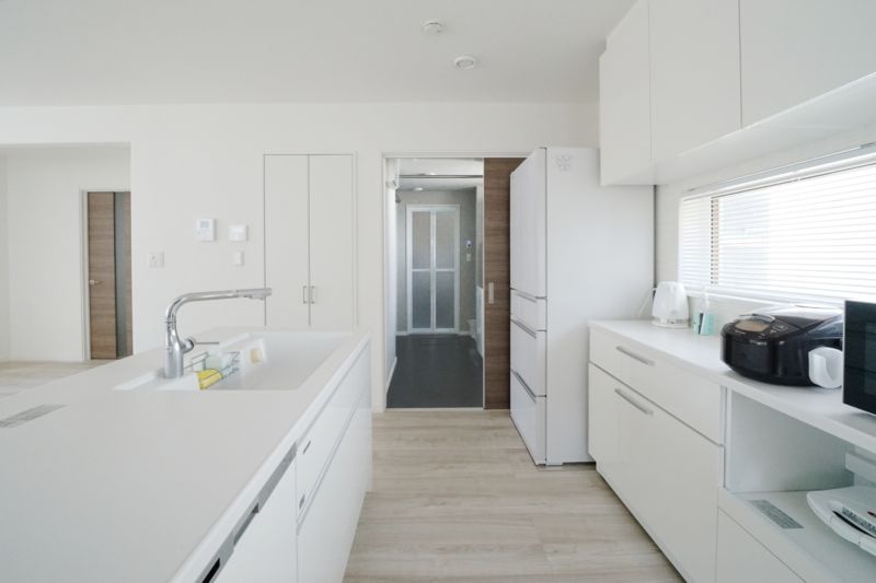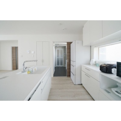 人造大理石カウンターキッチン 食器棚付き
