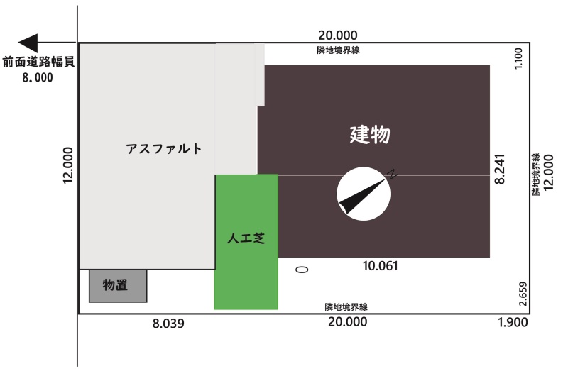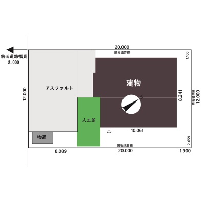 建物の階建 地上2階建 主要採光面 南西 構造 木造(2×4) 接道状況 一方 - 南西側幅8.00mの公道に12.00m接道