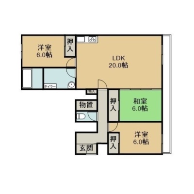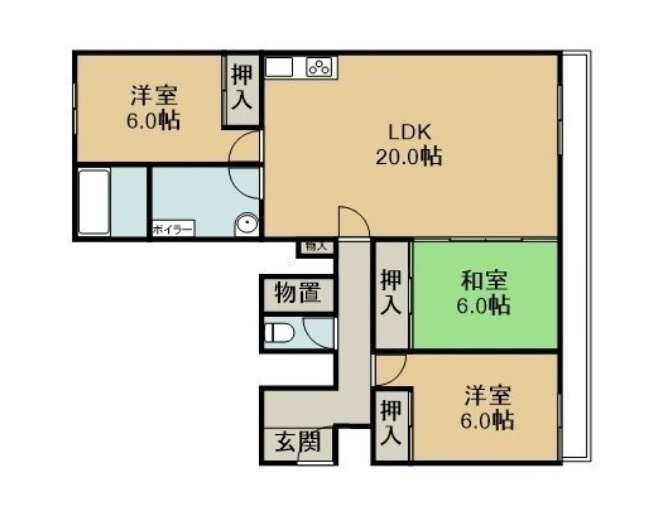 3LDK(75.73m²)└ LDK20帖 洋室6帖 洋室6帖 和室6帖