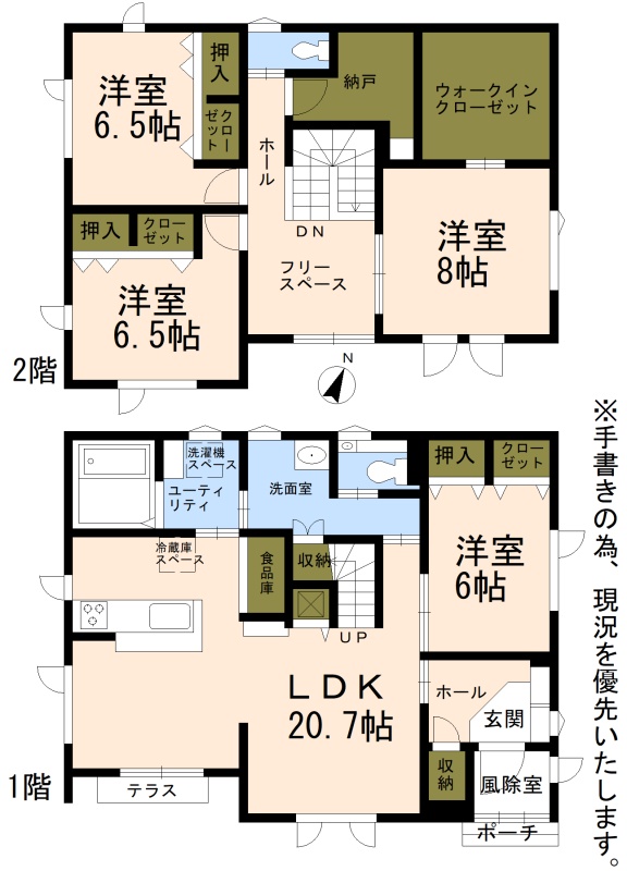 ここに注目!★Vividoとは? ⇒ヒートポンプ(電気)とガス給湯暖房機(エコジョーズ)を組み合わせたシステムです。メリットは夜間など電気料金が安い時間帯は電気を、それ以外をエコジョーズへ自動で切り替える為経済的です。また、LPガスと電気のメリットを両取りできる「e-コスト制御」運転により、外気温に合わせて快適なエネルギー源を自動で選択し、光熱費を削減します。ガス料金は普通のLPとは違い専用の料金体系となります。特徴は他にも電気温水器のように湯切れの心配もありませんし、「ふく射熱暖房」なので暖かさの質が他とは違います。お部屋全体をじんわり暖め温度ムラもなく、燃焼しない「ふく射熱」により空気も汚さず乾燥も防ぎます。遠赤外線で体の芯から暖める優しい暖房を是非体験してください ・屋根無落雪(ダクトヒーターあり) ・玄関床暖完備 ・Vivido採用(電気・LPガスのハイブリッド。専用の料金形態により通常の料金より圧倒的に経済的) ・ダウンライト・間接照明完備 ・巨大ウォークインクローゼット ・物置完備 ・駐車場2台~3台可能(現地要確認) ・南向き日当たり良好 ・2階納戸や玄関収納、踊り場洗濯物干し場あり