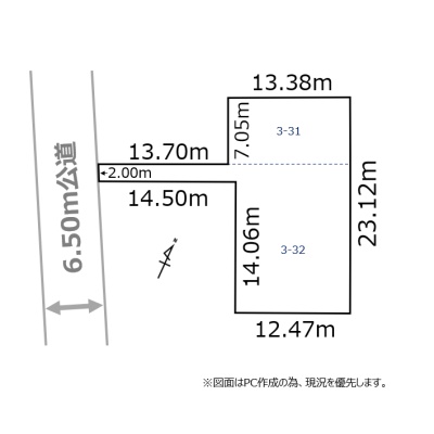 総区画数-/- 接道状況 一方 - 南西側幅6.50mの公道に2.00m接道