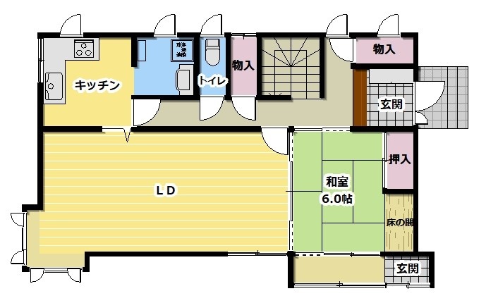 | 間取り | 4LDK1階:LDK 和室6帖 / 2階:洋室 洋室 洋室 |